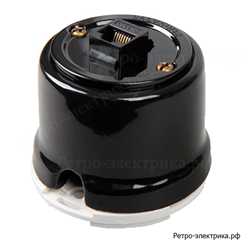 Розетка Intrnet для наружного монтажа "Salvador" OP.INT.WT, черная Характеристики Материалы фарфор, термостойкая электротехническая пластмасса Монтаж Наружный Страна производства Россия Степень защиты IP 40 Размер ø65 Н57